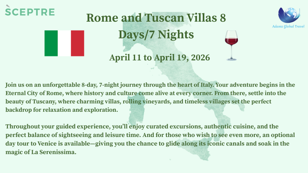 For any questions or other information, please contact us @ judy.adams@adamsglobaltravel.com - or - goadamsglobal2@gmail.com